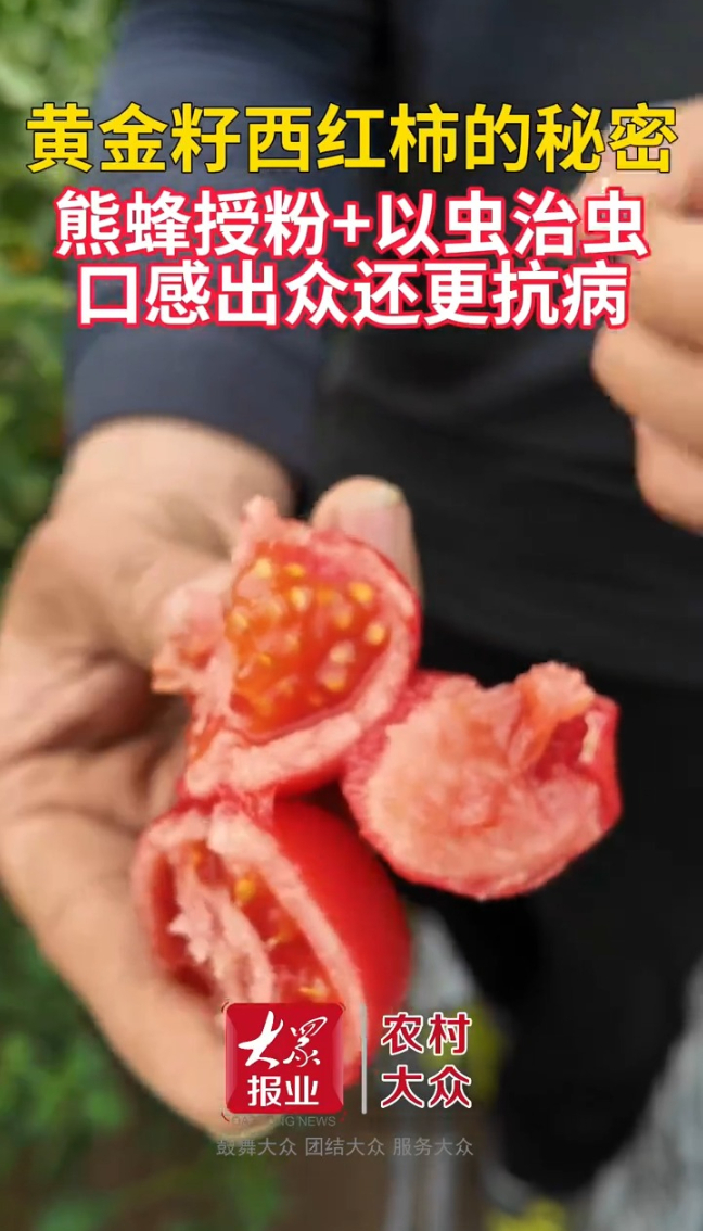 “黄金籽”西红柿凭啥成电商爆款?一口咬下去“酸甜爆汁、籽粒分明”大众新闻·农村大众 08:36原创潍坊自然邦生态农业科技有限公司在昌乐县乔官镇唐家店子村种植的“黄金籽”西红柿,目前已成为电商平台上的热门产品。这种西红柿一口咬下去,酸甜可口,籽粒分明,口感特别。 在种植过程中,企业用上了熊蜂授粉。为了保护授粉熊蜂不受伤害,企业完全摒弃化学农药,探索采用以虫治虫、以菌治虫等生物防治技术来控制病虫害。(大众新闻·农村大众记者 李伟)