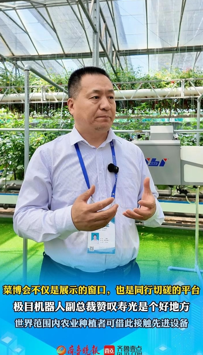 果然视频|菜博会搭建交流平台,农业种植者接触先进设备齐鲁晚报·齐鲁壹点客户端 09:06原创4月20日,第二十七届中国(寿光)国际蔬菜科技博览会盛大开幕。苏州极目机器人科技公司副总裁翟辉介绍:“寿光是蔬菜之乡,每年举办的菜博会,可以让全球种植者接触先进设备,与同行切磋交流。” 齐鲁晚报·齐鲁壹点 王佳潼 马小杰