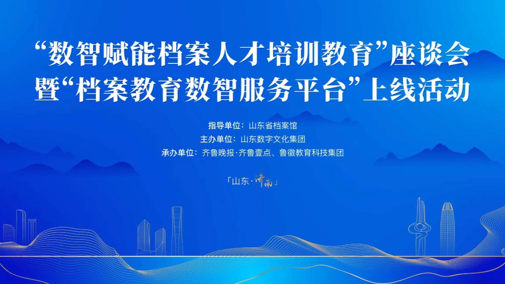 数智赋能档案人才培训教育座谈会举办,档案教育数智服务平台上线大众报业·齐鲁壹点 17:174月21日上午,“数智赋能档案人才培训教育”座谈会暨“档案教育数智服务平台”上线活动在济南精彩举行。本次活动由山东省档案馆指导,山东数字文化集团主办,齐鲁晚报•齐鲁壹点、鲁徽教育科技集团承办。活动中,“山东数字文化集团档案数智研究院”正式揭牌,并举行了专家聘任仪式。
