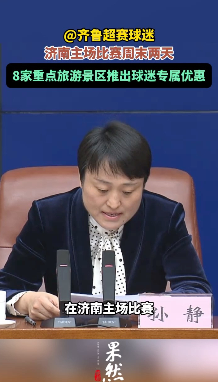 果然视频|济南8家重点旅游景区推出齐鲁超赛球迷专属优惠齐鲁晚报·齐鲁壹点客户端 18:03原创4月21日,济南市政府新闻办召开新闻发布会,介绍即将于4月25日在山东省体育中心鸣哨开赛的2026年山东省齐鲁足球超级联赛济南赛区的有关情况。(齐鲁晚报·齐鲁壹点记者 石晟绮)