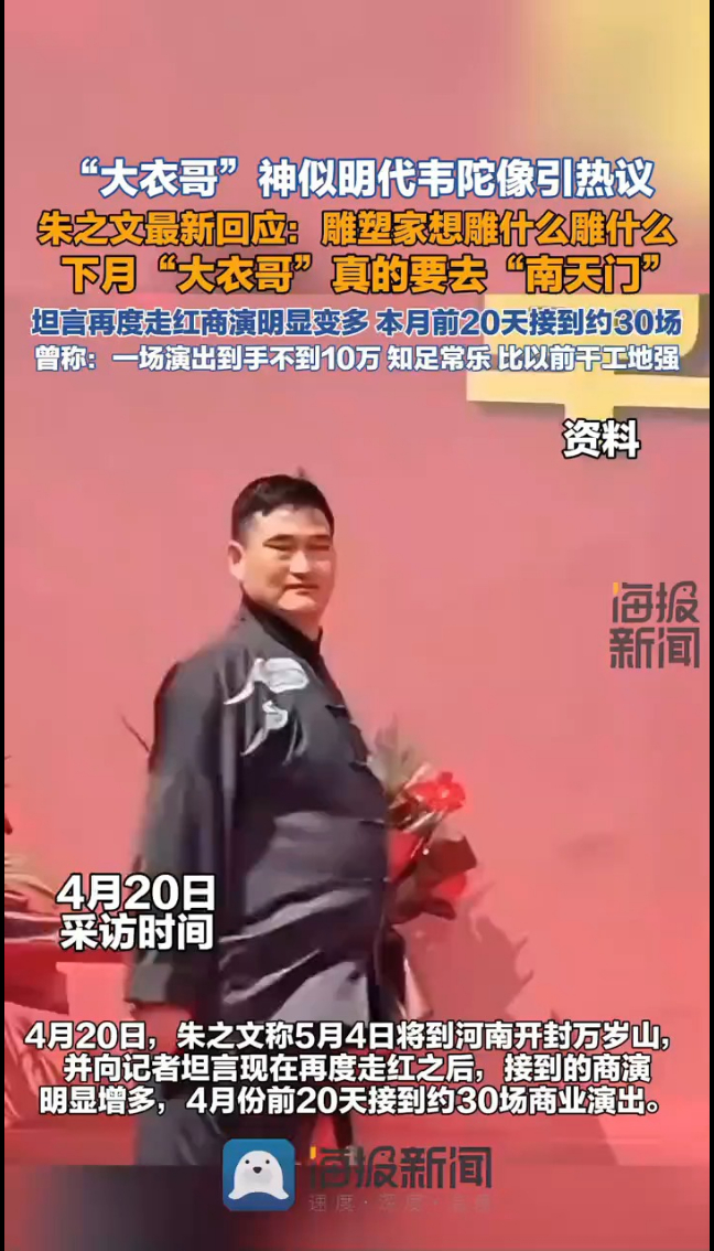 “大衣哥”神似明代韦陀像引热议,朱之文回应