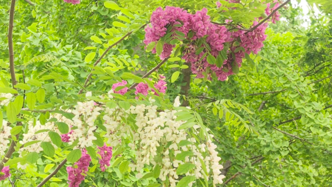 双槐红白相映,春风漫染燕山大众新闻 | 09:19 原创大众新闻 微信扫码扫码下载客户端两树毗邻而立,花色交错交融。双色恍如同枝,一树宛若双花。白槐素雅凝香,红槐温婉绽艳。两树错落相依、花色彼此映衬。4月22日的山东财经大学燕山校区,藏尽四月槐间春色。(大众新闻记者 刘蓬基)