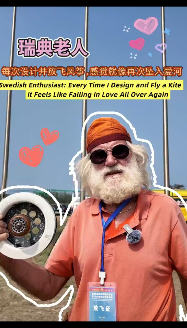 Andreas Ågren, 76, is a kite enthusiast from Sweden.On April 17, at the Weifang International Kite Festival, he was skillfully controlling the kite string, focusing on keeping his kite airborne among hundreds of others.He is passionate about designing, making and flying his own kites.However, what fascinates him most are the traditional kites of Weifang.It was his first visit 25 years ago that made him deeply impressed by the craftsmanship of making traditional Weifang kites.