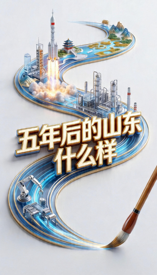 今后五年,山东将会是什么模样?假如你有一支笔,你会怎样画出一幅新图景?近日,山东省人民政府印发《山东省国民经济和社会发展第十五个五年规划纲要》,全面阐述“十五五”时期发展战略、总体目标、主要任务和重要举措。沿着“施工图”展望“新蓝图”,这支笔落在工厂里,画出一条自动化的产线;落在海面上,画出一座转动的大风车;落在田野间,画出一片金黄的麦浪……带你去五年后的山东看一看!