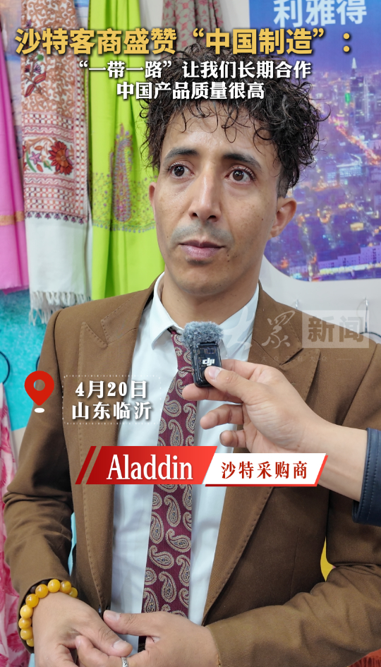 沙特客商盛赞“中国制造”:“一带一路”让我们长期合作 中国产品质量很高大众新闻客户端 09:22现场4月20日至22日,第五届RCEP区域(山东)进口商品博览会在临沂国际博览中心举办。沙特采购商Aladdin在展会现场表示,“一带一路”倡议推动了中国与沙特的贸易往来,中国产品的质量也非常好。(大众新闻记者 凌志 马海燕 石少汛 王亚明)