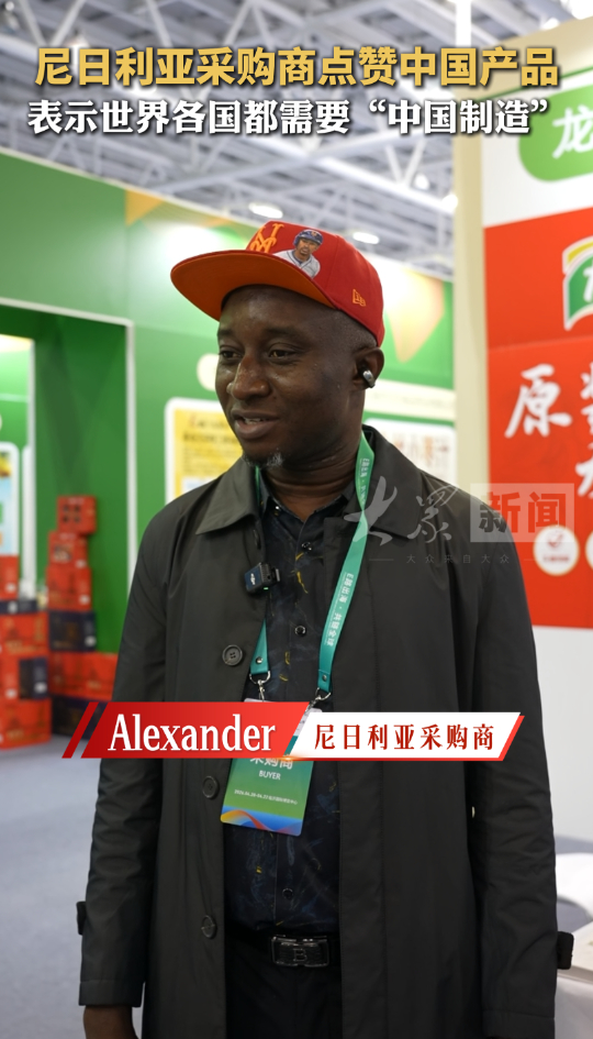 尼日利亚客商点赞中国产品,表示世界各国都需要“中国制造”大众新闻客户端 09:36现场4月20日至22日,第五届RCEP区域(山东)进口商品博览会在临沂国际博览中心举办。尼日利亚采购商Alexander在展会现场表示,不仅是尼日利亚,世界上许多国家都高度依赖“中国制造”。(大众新闻记者 凌志 马海燕 王亚明 石少汛)