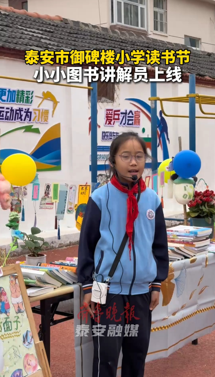 齐鲁晚报·齐鲁壹点 徐慧 4月21日,泰安市御碑楼小学举办读书节,小小图书讲解员上线。