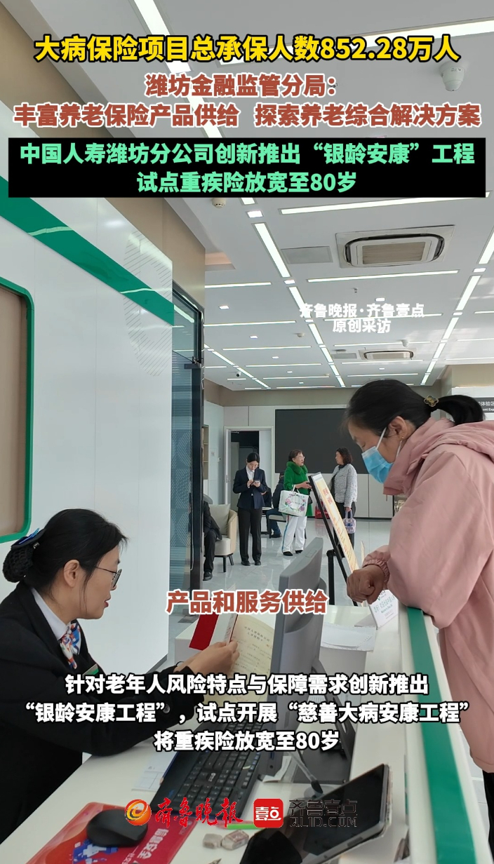 果然视频|潍坊丰富养老保险产品供给,探索养老综合解决方案齐鲁晚报·齐鲁壹点客户端 10:56原创据了解,中国人寿保险创新推出专属产品“银龄安康工程”,近5年累计承保超708万人次,提供意外伤害风险保障超3950亿元,理赔超35万人次,赔付保险金5.45亿元。截至2025年12月末,潍坊市保险业养老金业务保费收入13.78亿元,同比增长59.98%,大病保险项目总承保人数852.28万人,累计支出报销费用3.52亿元。 齐鲁晚报·齐鲁壹点 李国栋