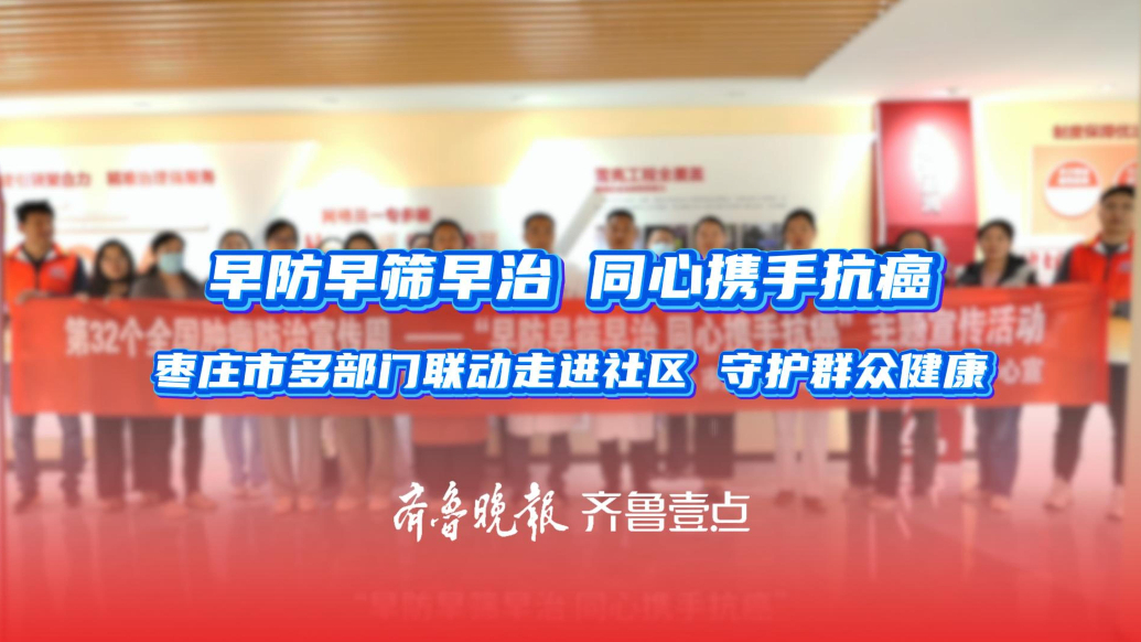早防早筛早治,同心携手抗癌——枣庄市开展肿瘤防治宣传活动齐鲁晚报·齐鲁壹点客户端 11:05原创为迎接第32届全国肿瘤防治宣传周,4月20日,枣庄市卫生健康委联合枣庄市妇联、枣庄市疾控中心、枣庄市胸科医院、枣庄市妇女儿童活动中心,共同走进凯润社区,开展了一场主题鲜明、内容丰富的肿瘤防治宣传及健康服务活动。