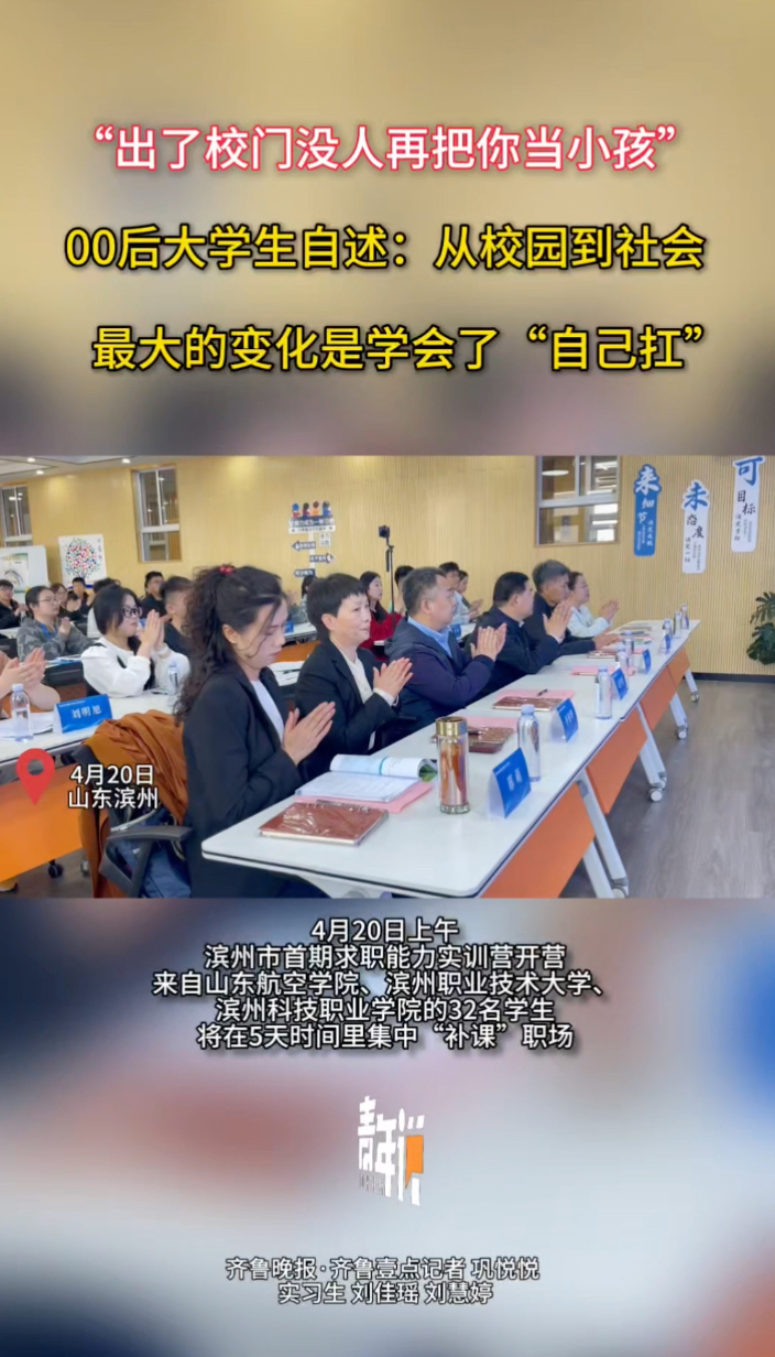 00后大学生自述:从校园到社会,最大的变化是学会了“自己扛”齐鲁壹点 | 11:38 原创齐鲁晚报·齐鲁壹点客户端 微信扫码扫码下载客户端(记者 巩悦悦 实习生 刘佳瑶 刘慧婷)“出了校门,没人再把你当小孩。”00后大学生自述:从校园到社会,最大的变化是学会了“自己扛”。淄博市淄川区人社局就业科科员齐秀华提醒:懂得感恩,才能走得更远。4月20日,滨州市首期求职能力实训营开营,32名大学生开启5天“职场补课”,不拼时长拼实战。