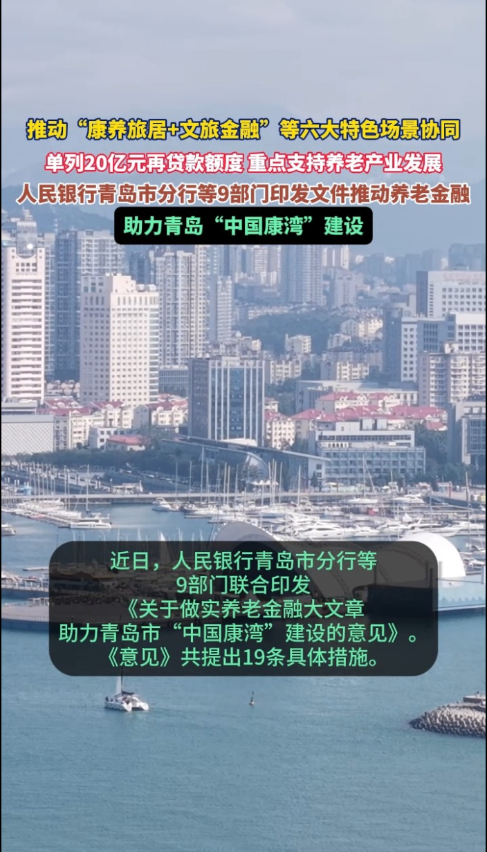 果然视频丨人行青岛市分行等9部门发文,推动养老金融齐鲁晚报·齐鲁壹点客户端 14:43原创推动“康养旅居+文旅金融”等六大特色场景协同,打造康湾特色金融生态;单列20亿元支农支小再贷款额度,重点支持养老产业发展……近日,人民银行青岛市分行等9部门联合印发《关于做实养老金融大文章 助力青岛市“中国康湾”建设的意见》。《意见》共提出19条具体措施。(齐鲁晚报·齐鲁壹点记者 尚青龙)