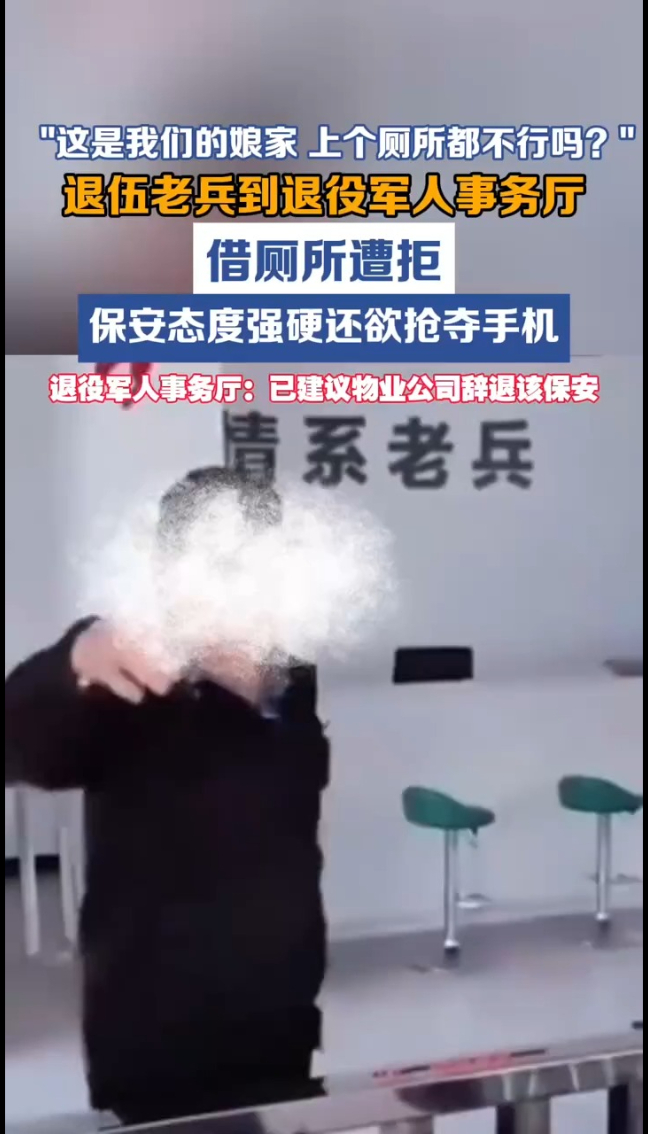 主播说丨退伍老兵到退役军人事务厅借厕所遭拒,保安态度强硬还欲抢夺手机