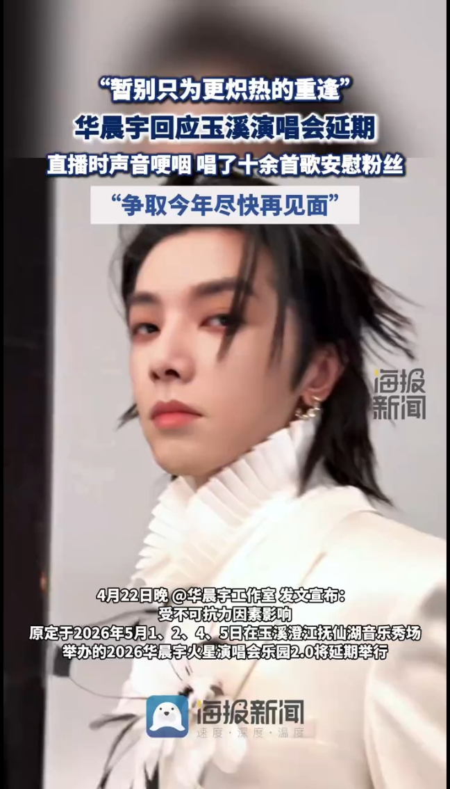 华晨宇回应玉溪演唱会延期,直播时声音哽咽 唱了十余首歌安慰粉丝