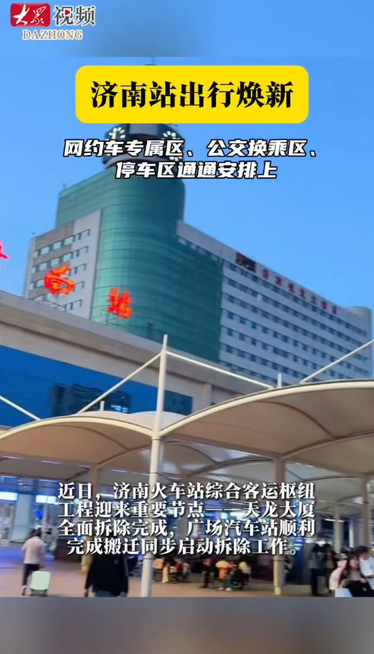 近日,济南火车站综合客运枢纽工程迎来重要节点——天龙大厦全面拆除完成,广场汽车站顺利完成搬迁同步启动拆除工作,标志着这一重点民生工程在区域交通功能优化、城市空间焕新上迈出了关键一步。天龙大厦与广场汽车站全部拆除后,将释放约1万平方米的地面空间,同步推进项目其他区域拆迁工作,经过多轮会商研究、现场踏勘论证,按照“即拆即用”的原则,结合南广场征拆时序安排,在不影响项目整体推进的前提下,对释放的地面空间实施临时提升改造。此次临时改造,核心是先行解决当下的出行难点,让群众出行更加便捷有序。针对网约车与社会车辆混行拥堵问题,设置网约车专属区域,同步布设电子围栏,实现分道行驶、规范运营,从根源上破解混行抢道、拥堵缓行难题。针对城际公交换乘不便问题,增设专属城际公交换乘区域,优化换乘流线,大幅缩短旅客换乘距离与等待时间。针对非机动车停车难问题,增设规范有序的非机动车停车区域,充分满足周边市民及往来旅客的停车需求。(大众新闻记者 陈景郁)