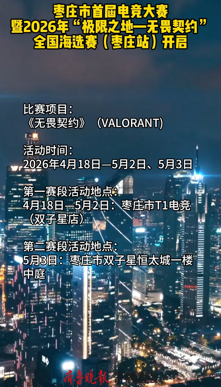 “好运山东”“山东健康|德圣地产杯”枣庄市首届电竞大赛暨2026年“极限之地—无畏契约”全国海选赛(枣庄站)
