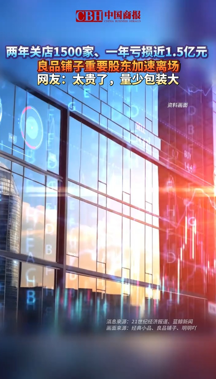 两年关店近千家,年亏损近1.5亿元!良品铺子重要股东加速离场中国商报 14:11两年关店1500家,一年亏损近1.5亿元!良品铺子重要股东加速离场。网友:太贵了,量少包装大 新闻热线:0531-85193278