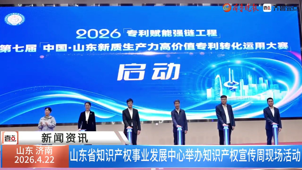山东省知识产权事业发展中心举办知识产权宣传周现场活动大众报业·齐鲁壹点 14:12 4月22日,山东省知识产权事业发展中心在济南新旧动能转换起步区举办知识产权宣传周现场活动,全面展示“十四五”时期知识产权公共服务成果,集中签约一批知识产权运营转化项目,正式启动2026“专利赋能”强链工程、第七届中国・山东新质生产力高价值专利转化运用大赛。