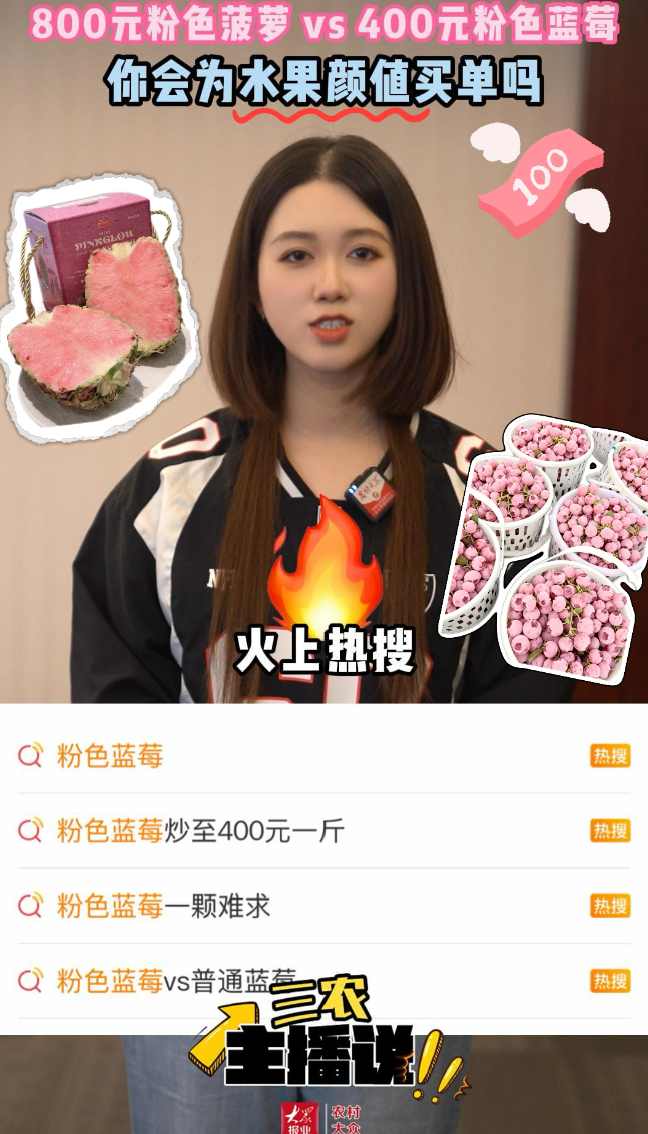 三农主播说|800元粉色菠萝 vs 400元粉色蓝莓 你会为水果颜值买单吗?