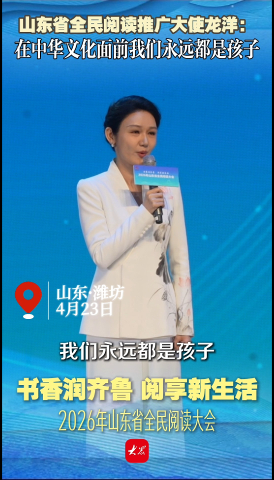 山东省全民阅读推广大使龙洋:在中华文化面前我们永远都是孩子大众新闻 15:32现场4月23日是第31个世界读书日。23日上午,2026年山东省全民阅读大会在潍坊举办。开幕式上,中央广播电视总台主持人龙洋,获聘山东省全民阅读推广大使。现场龙洋分享了个人的阅读感悟。(大众新闻记者 申家鑫 蓝天 王佳声 都镇强)
