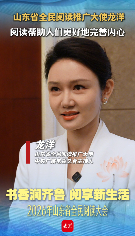 4月23日是第31个世界读书日。23日上午,2026年山东省全民阅读大会在潍坊举办。会后山东省全民阅读推广大使、中央广播电视总台主持人龙洋接受记者采访时表示,不仅要用读书的方式涵养内心、滋养灵魂,也是为了帮助人们在信息碎片化的时代更好地完善自己的心灵。只有一个丰盈的、充实的灵魂,才能在传播中华传统文化的道路上走得更加坚定,也可以把更多的山东故事、中国故事讲给世界听。(大众新闻记者 申家鑫 蓝天 王佳声 都镇强)
