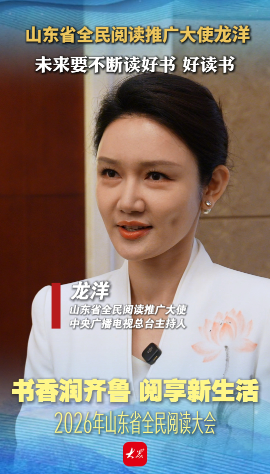 山东省全民阅读推广大使龙洋:未来要不断读好书 好读书大众新闻 15:51现场4月23日是第31个世界读书日。23日上午,2026年山东省全民阅读大会在潍坊举办。会后山东省全民阅读推广大使、中央广播电视总台主持人龙洋接受记者采访时表示,荣膺山东省全民阅读推广大使的身份是很大的光荣,同时也是一份沉甸甸的责任,这会激励我在未来的道路上,不断地去读好书、好读书,还要带动更多的朋友们一起读书。(大众新闻记者 蓝天 申家鑫 王佳声 都镇强)
