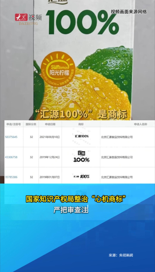 “汇源100%”是商标!国家知识产权局出手整治“心机商标”大众新闻 16:28原创国家知识产权局整治“心机商标”严把审查注册关进一步完善了商标审查标准制定《带有欺骗性的商标审查审理指导意见》对已经依规注册但使用中存在严重误导行为的商标依法主动从严从快予以处置截至目前已累计对3351件此类商标依职权宣告无效(大众新闻编辑 刘爽)
