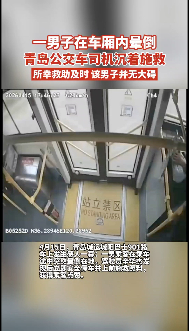 一男子在车厢内晕倒,青岛公交车司机沉着施救