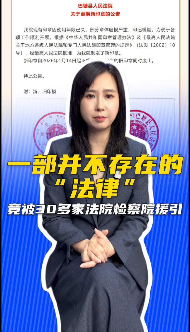半岛时评|一部并不存在的“法律”竟被30多家法院检察院援引 后果可不只是闹了回乌龙半岛新闻 | 20:29 原创大众新闻·半岛新闻 微信扫码扫码下载客户端半岛时评|一部并不存在的“法律”竟被30多家法院检察院援引 后果可不只是闹了回乌龙