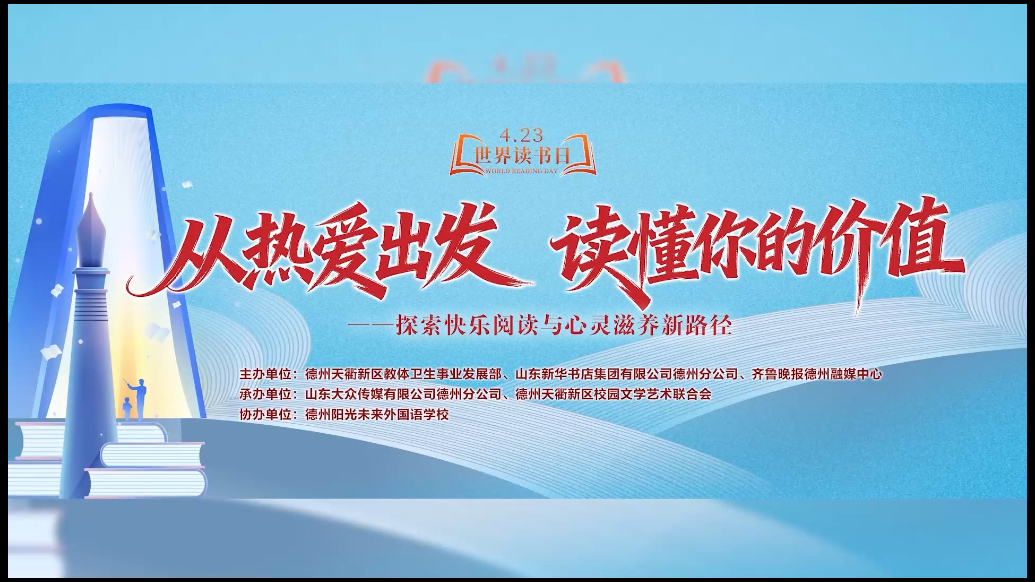 世界读书日主题活动丨从热爱出发,读懂你的价值齐鲁晚报·齐鲁壹点客户端 21:00原创4月22日,在第31个世界读书日来临之际,以“从热爱出发,读懂你的价值——探索快乐阅读与心灵滋养新路径”为主题的天衢新区2026年世界读书日主题活动在德州阳光未来外国语学校举行。(齐鲁晚报·齐鲁壹点 刘超 李庆都 孙文丽 马雪平)
