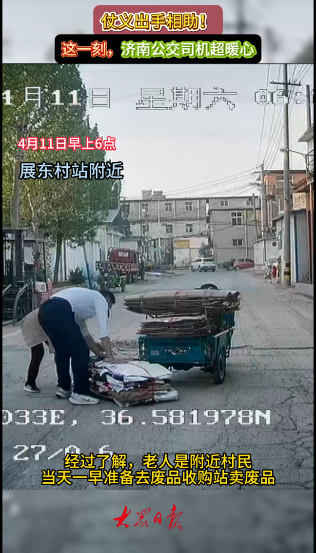 车主是一位60多岁的女士,正吃力地试图将一大摞沉重的纸箱搬回车上,但几次尝试都未能举起。此时天色尚早,村道狭窄,三轮车长时间停在路中央存在安全隐患。刘玉苹没有丝毫犹豫,他安全停稳公交车,向车内乘客简单说明情况后,迅速下车来到老人身边,合力将散落的纸箱抬回车上。