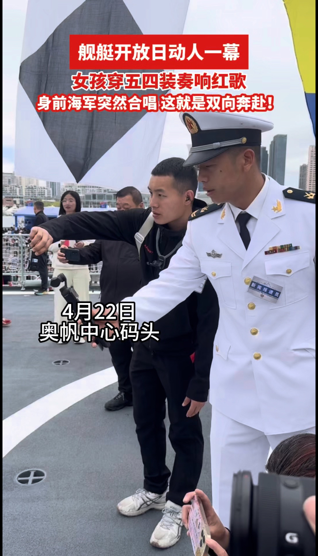 舰艇开放日动人一幕:女孩穿“五四装”奏响红歌,身前海军突然合唱⋯⋯这就是双向奔赴