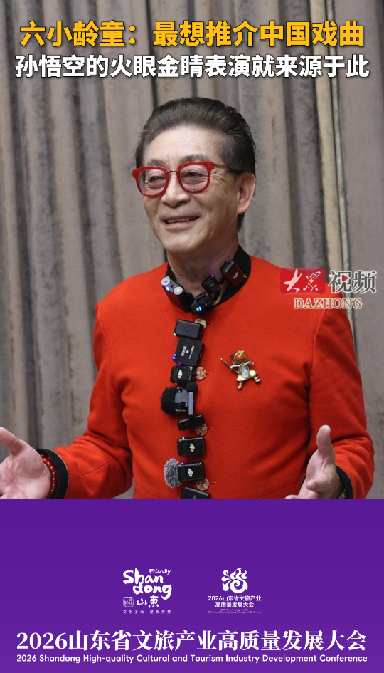 六小龄童:最想推介中国戏曲!孙悟空的火眼金睛表演就来源于此大众新闻 昨天23:01原创4月23日,在淄博举行的2026山东省文旅产业高质量发展大会上,86版《西游记》孙悟空扮演者、著名演员六小龄童向记者分享了他对传统戏曲传承的深切期望。他表示,最希望推介的就是中国传统的戏曲,因为现在很多年轻小朋友没有进过戏园子看戏,而孙悟空的火眼金睛等经典表演,都来自中国传统的戏曲艺术。(大众新闻记者 谢巨洋 李钦鑫 汤梾埠 张子良)
