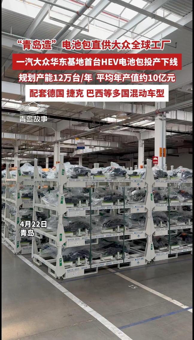 反向输出!“青岛造”电池装进德国大众,首台HEV电池包正式投产下线