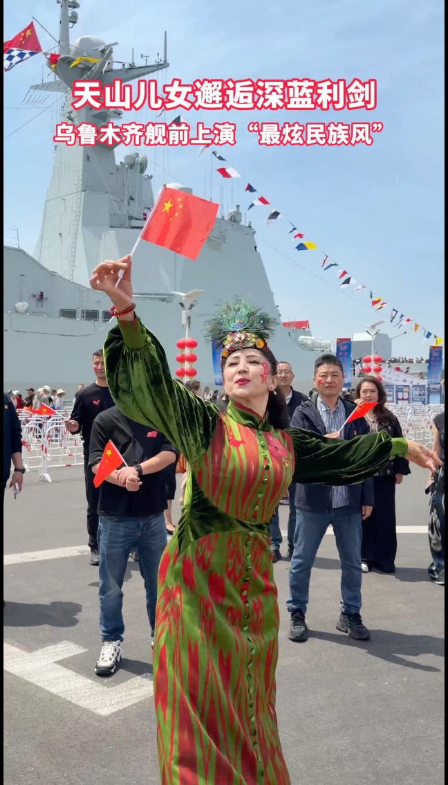 天山儿女邂逅深蓝利剑,乌鲁木齐舰前上演“最炫民族风”