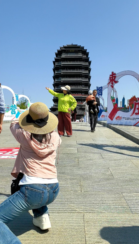 在淄博海岱楼,各种角度、各种姿势的拍照“宝典”被游客们陆续打开,根本停不下来。
