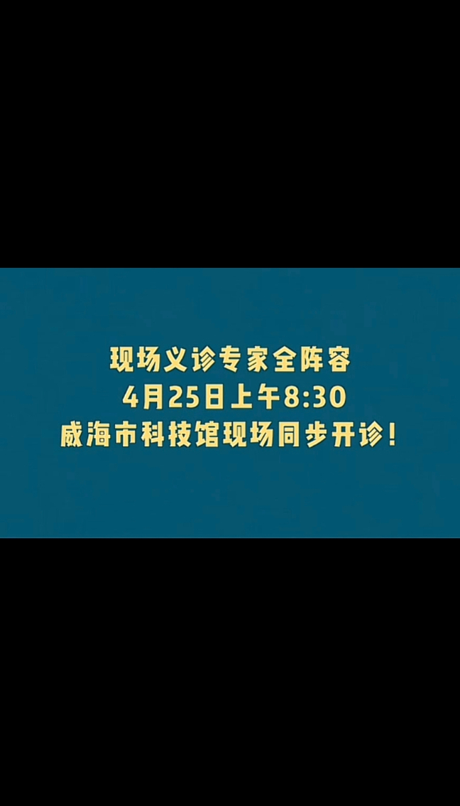 威海中医养生夜校开班+中医药文化科普专家试讲+大型中医义诊同步开启!大众新闻·大众日报 17:05原创重磅官宣!威海中医养生夜校开班+中医药文化科普专家试讲+大型中医义诊同步开启!4月25日上午8:30,活动统一地点:威海市科技馆学术报告厅,全程公益免费!快带着家人朋友一起来吧!
