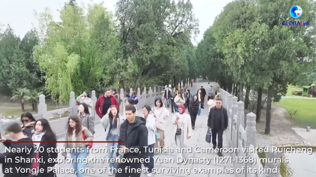 International students explore Shanxi's ancient heritageXinhua 16:30Students from France, Tunisia and Cameroon explored Ruicheng, Shanxi, on a study tour, visiting ancient murals at Yongle Palace and other historic sites.
