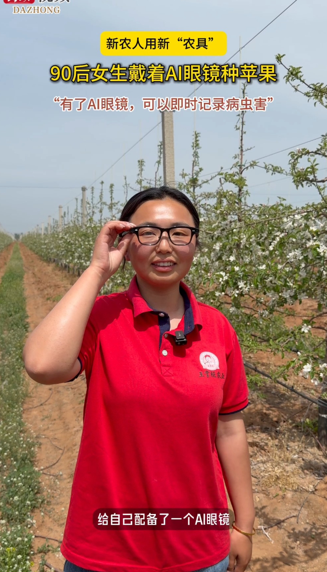 当日,记者在位于栖霞市的山东王掌柜农业发展有限公司苹果种植基地,见到了一位戴着AI眼镜种苹果的90后女生。山东王掌柜农业发展有限公司技术经理张志飞表示,自己是做苹果种植技术方面的工作,有了AI眼镜,能即时记录苹果树的生长情况、病虫害情况等。