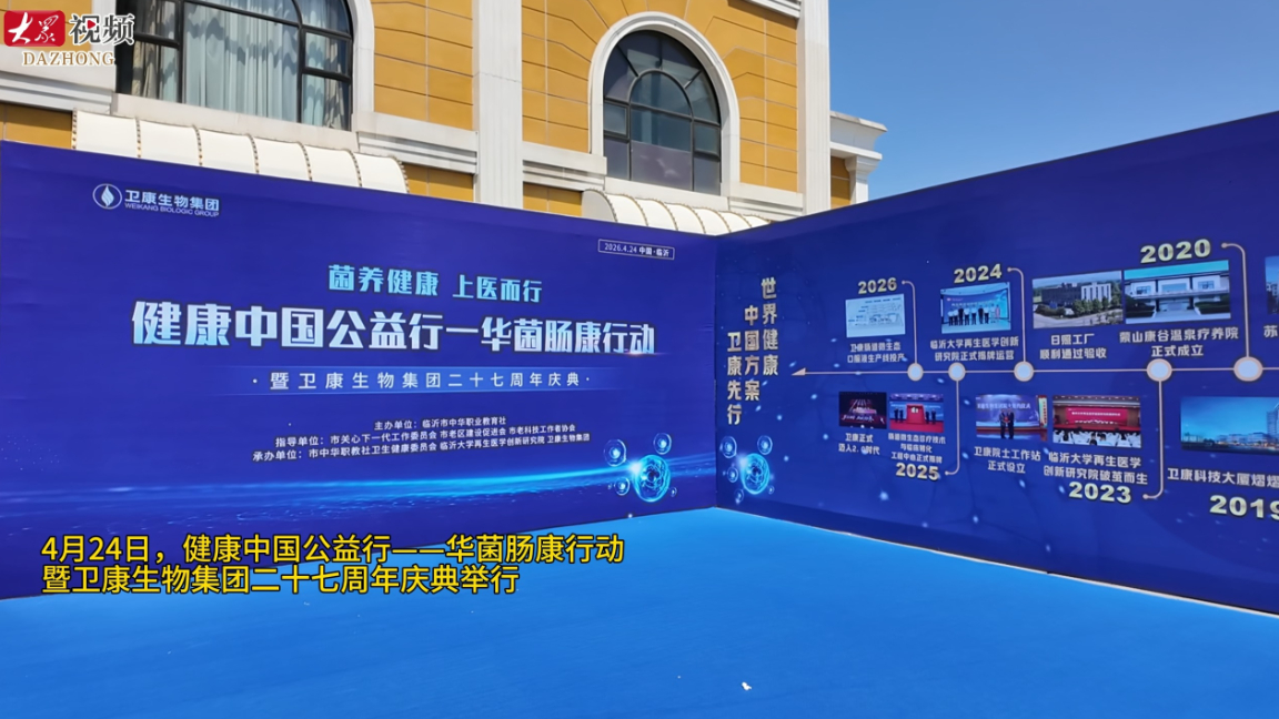 健康中国公益行——华菌肠康行动暨卫康生物集团二十七周年庆典举行大众新闻 18:45原创4月24日,健康中国公益行——华菌肠康行动暨卫康生物集团二十七周年庆典举行,会上,卫康生物集团发起“菌养健康·平赢未来”华菌·健康中国公益行肠康行动,未来两年内将在全国举办1万场免费体验活动。(大众新闻记者 王楠 杜辉升 视频 徐明)