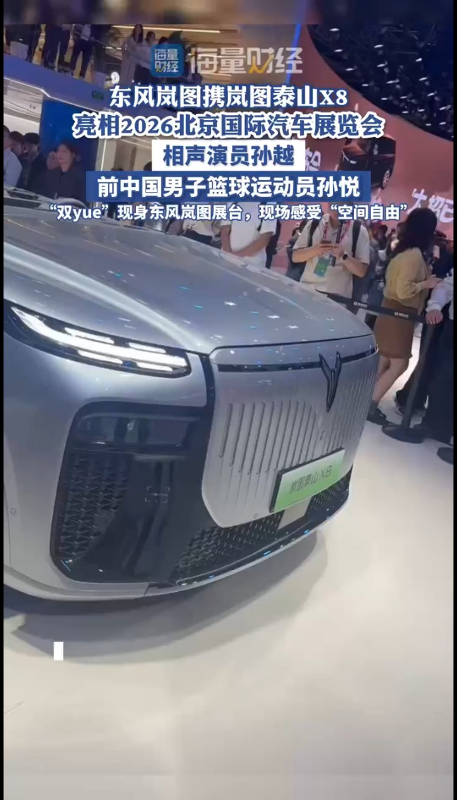 直击2026北京车展丨孙越和孙悦“双yue”组合现身东风岚图展台 现场感受“空间自由”大众新闻·海报新闻 16:41原创4月24日,东风岚图携岚图泰山X8亮相2026北京国际汽车展览会首都国际会展中心,相声演员孙越和前中国男子篮球运动员孙悦“双yue”现身东风岚图展台,现场感受“空间自由”。(大众新闻·海报新闻记者 孙佃潇 北京报道)