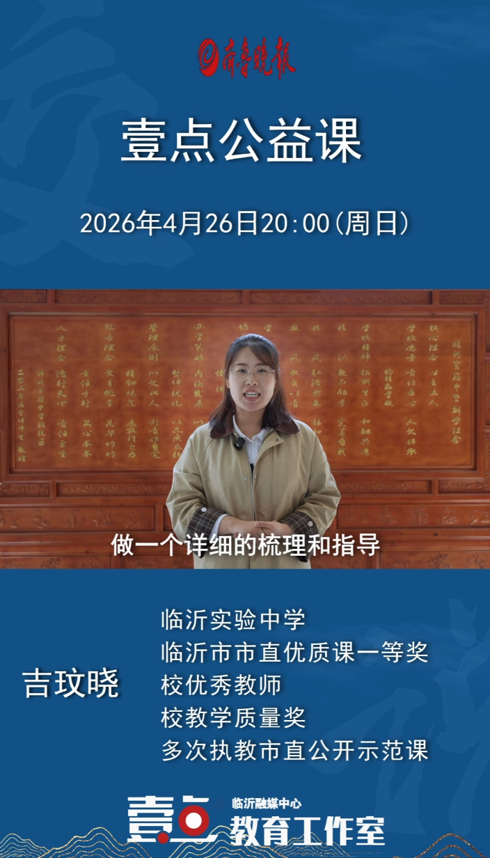 壹点公益课|中考数学如何提分?本周日临沂这位名师带您复习大众报业·齐鲁壹点 16:434月26日(周日)20:00,栏目特邀临沂市优秀教师吉玟晓老师,带来《数学:中考复习专题》专项直播指导。本次直播将聚焦中考数学核心复习模块,对高频考点进行系统梳理,拆解实用解题方法,帮助考生理清复习重点、突破易错难点、构建完整知识框架,全方位提升中考数学备考效率与应试能力。
