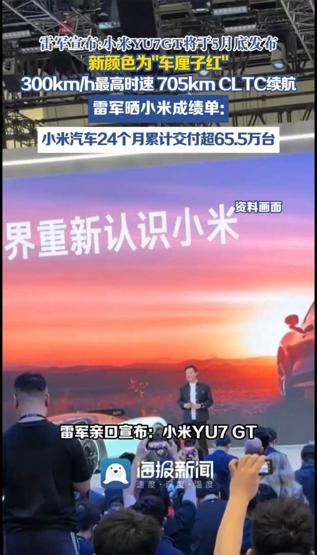 主播说丨雷军宣布:小米YU7GT将于5月底发布,新颜色为“车厘子红”