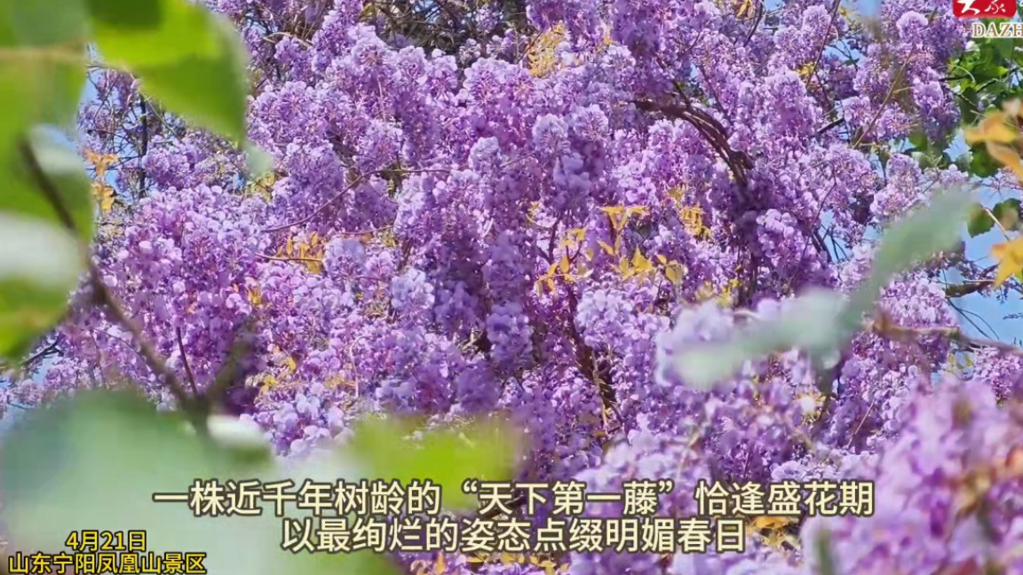 4月21日,在山东省泰安市宁阳县凤凰山景区内,一株近千年树龄的“天下第一藤”恰逢盛花期,以最绚烂的姿态点缀明媚春日,将穿越千年的生命之美藏进这人间四月的温柔景致里,成为春日里最动人的亮色。
