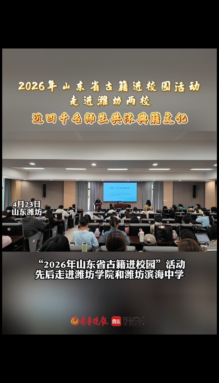 果然视频|“山东省古籍进校园”活动走进潍坊学院与滨海中学齐鲁晚报·齐鲁壹点客户端 20:13原创4月23日,“2026年山东省古籍进校园”活动先后走进潍坊学院和潍坊滨海中学。活动以专家讲座、古籍专题展览及雕版印刷、石碑传拓、线装书制作等非遗技艺沉浸式体验为载体,吸引两校近四千名师生近距离感受齐鲁典籍文化魅力,为古籍保护与传承播撒青春种子。 齐鲁晚报·齐鲁壹点 王佳潼