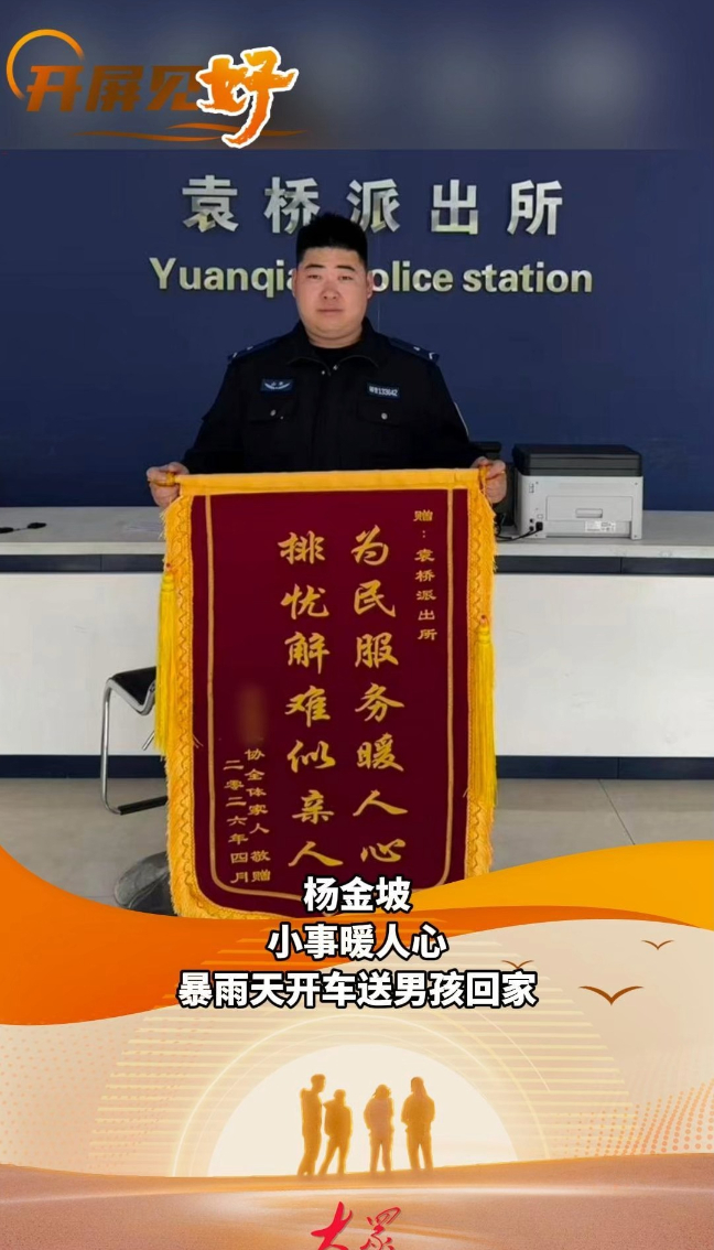 4月22日,男孩的家人专程为杨金坡送来一面锦旗。暴雨中的一次护送,事情虽小,却让一个家庭记在了心里,也让这身警服多了一份看得见的温度。