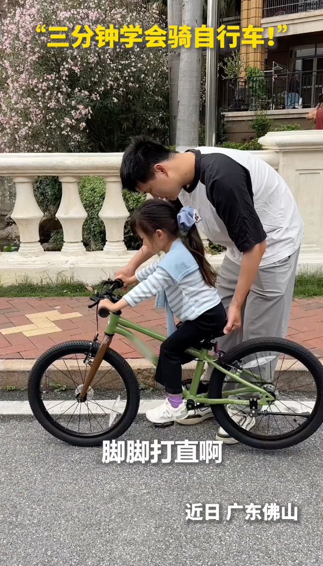 “三分钟速成!”爸爸分享教会4岁女儿骑车的方法,网友:我当年摔那么多次算什么?