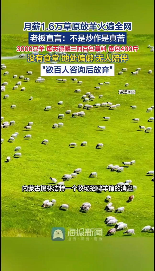 最近,内蒙古锡林浩特一个牧场招聘羊倌的消息,火遍了全网!网友们纷纷留言:还要人吗?我报名!