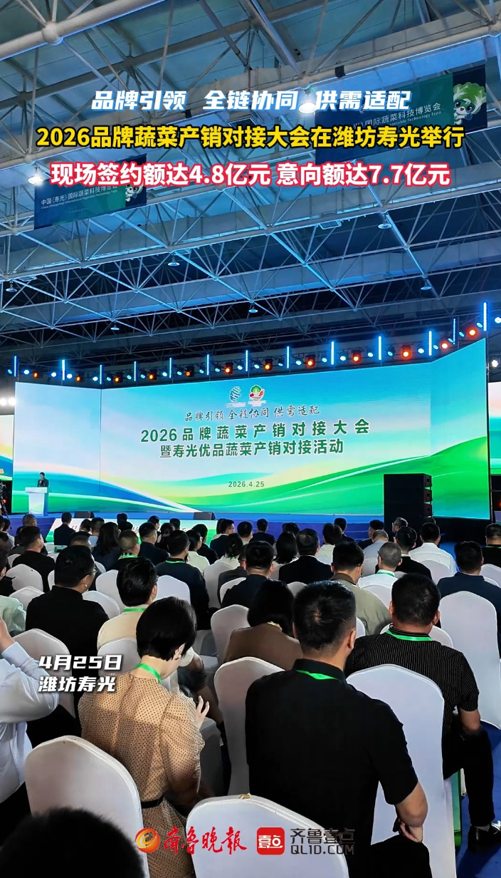 果然视频|直通全国餐桌,品牌蔬菜产销对接大会在潍坊寿光举行齐鲁晚报·齐鲁壹点客户端 昨天20:37原创4月25日上午,2026品牌蔬菜产销对接大会暨寿光优品蔬菜产销对接活动在潍坊寿光蔬菜高科技示范园2号馆举行。活动以“品牌引领 全链协同 供需适配”为主题,依托寿光蔬菜产业优势,旨在推动寿光优质蔬菜拓宽销路、直供全国,持续擦亮“寿光蔬菜”金字招牌。 齐鲁晚报·齐鲁壹点 马小杰