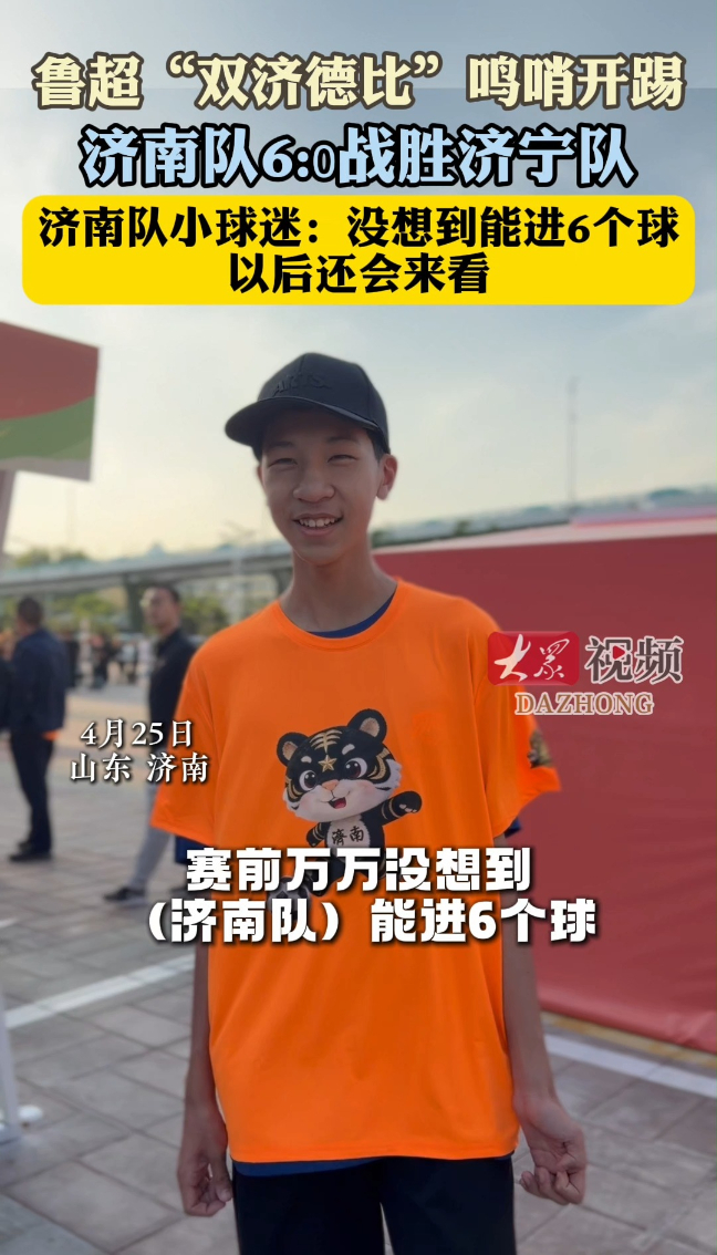 鲁超首轮济南队6-0横扫济宁迎开门红 球迷:万万没想到!以后还会看大众新闻 昨天21:25现场4月25日下午,“2026年山东省齐鲁足球超级联赛”济南赛区揭幕战在山东省体育中心体育场开打,主场作战的济南队以6比0大胜客队济宁队,取得开门红。济南小球迷表示,看得太爽了,没想到能进6个球,是一次不错的观赛体验。(大众新闻记者 程文琪 李亚平 吕乐 策划 王雅洁)