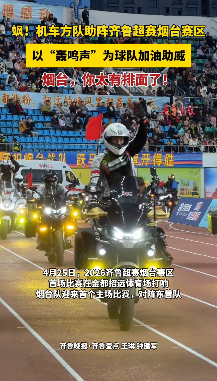 果然视频|烟台,你太有排面了!机车方队助阵齐鲁超赛烟台赛区大众报业·齐鲁壹点 昨天21:084月25日,2026齐鲁超赛烟台赛区首场比赛在金都招远体育场打响,烟台队迎来首个主场比赛,对阵东营队。现场,机车方队为齐鲁超赛烟台赛区助阵,以“轰鸣声”为球队加油助威。烟台,你太有排面了!(齐鲁晚报·齐鲁壹点 王琳 钟建军)